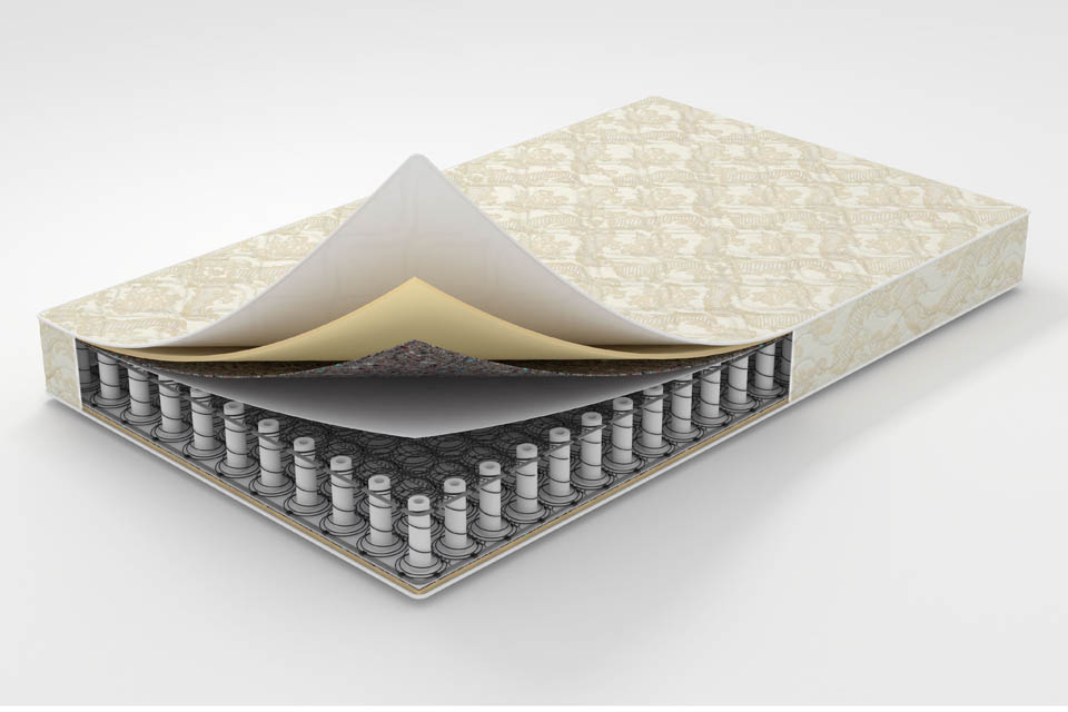 les matelas à ressorts sont représentés par un bloc avec des ressorts dépendants (tous les éléments sont reliés les uns aux autres) et avec des ressorts indépendants (chaque ressort est dans une poche séparée, donc lorsqu'un élément est pressé, les autres ne sont pas pressés);