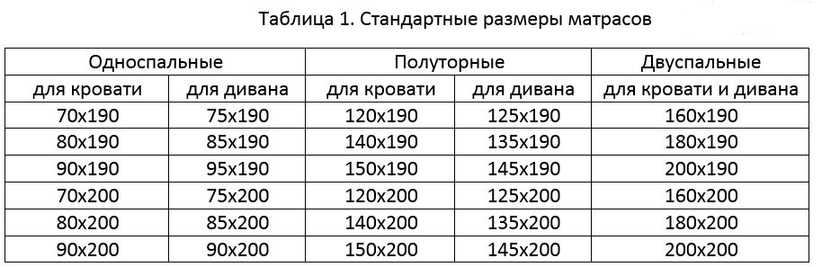 Les tailles les plus populaires sont 90x190 cm.Si le canapé est petit, choisissez un matelas 160x190 ou 140x190, mais une seule personne peut y dormir confortablement. Si le canapé, au contraire, est large, le produit est acheté 180x200 cm.