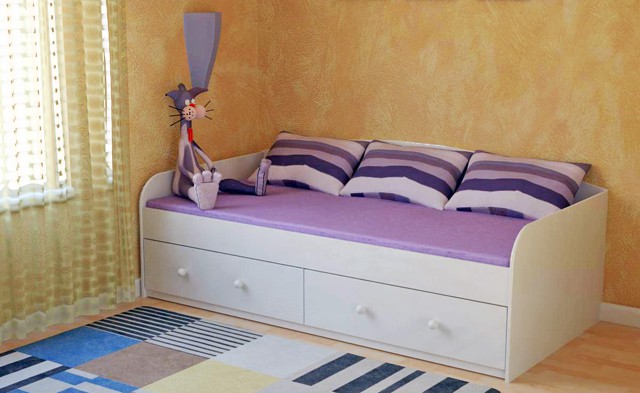 la fonctionnalité est un critère particulièrement important si la chambre des enfants n'est pas spacieuse. La présence de boîtes, de niches pour ranger la literie, la possibilité de transformation et la capacité d'un élément d'intérieur à remplir un certain nombre de fonctions sont les bienvenues.