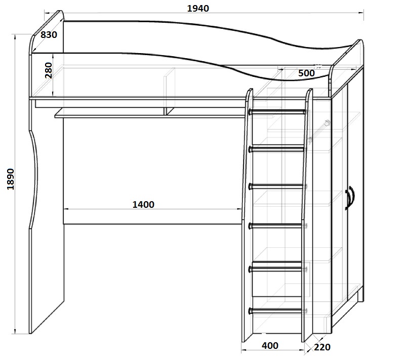 selon les spécificités de l'emplacement - modèles d'étage standard, lits mezzanines (situés au deuxième niveau de l'ensemble de meubles);