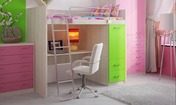 Une telle solution de conception est non seulement extrêmement fonctionnelle, pratique, mais aussi très intéressante en apparence. Il vous permet d'utiliser rationnellement l'espace limité de la chambre des enfants sans perdre sa fonctionnalité, son attrait et son confort.