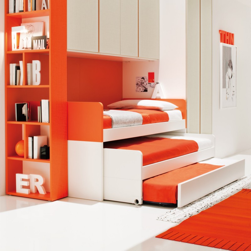 L'option originale est les lits gigognes pour enfants pour garçons et filles, comme sur la photo ci-dessous. Il s'agit d'un meuble transformable confortable qui ne surcharge pas visuellement l'espace de la chambre des enfants pendant la journée, mais qui est extrêmement confortable pour dormir la nuit.