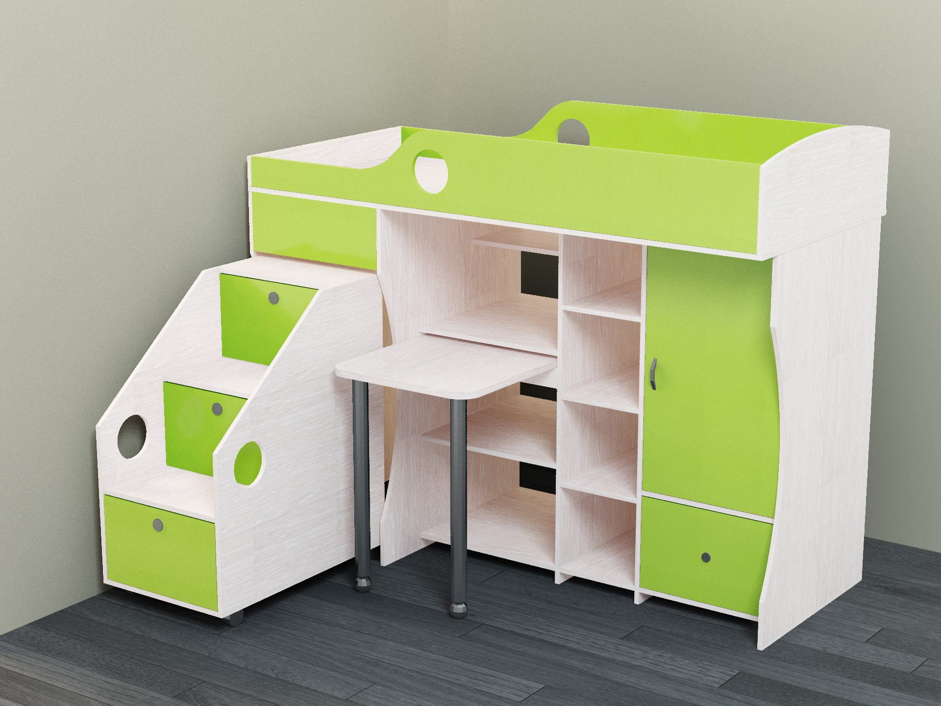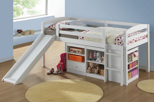 le meuble bas est en outre complété par un toboggan et une échelle. L'option toboggan sera une excellente solution pour le jeu des enfants;