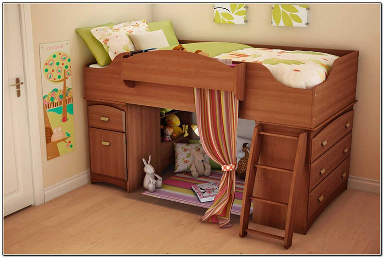 un lit d'enfant avec une armoire et un lit simple implique un grand nombre d'étagères. Ils peuvent accueillir tous les accessoires et objets de l'enfant qui sont généralement éparpillés dans la pièce ;
