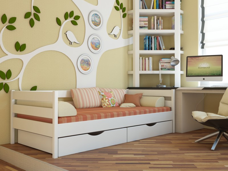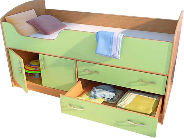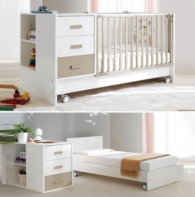 Simple - cette conception est un petit ensemble qui comprend une commode et un endroit pour dormir. Le dossier peut facilement être transformé en une petite table. Ce modèle peut être placé dans un lit moyen, qui peut accueillir aussi bien un enfant de deux ans qu'un adolescent. Lors de la transformation, la petite commode s'éloigne et peut désormais être utilisée comme un élément à part entière. En conséquence, il se transforme en un lit d'adolescent d'une longueur de près de 170 cm.Il existe des structures modulaires qui n'ont pas de commode, mais qui ont deux étagères coulissantes en dessous. Ces étagères peuvent servir d'espace de rangement supplémentaire pour les vêtements et articles de bébé. Vous pouvez voir différentes images avec différents types de ces produits pour le salon, les chambres d'enfants. La couleur est blanche, bleue, boisée, marron, multicolore.