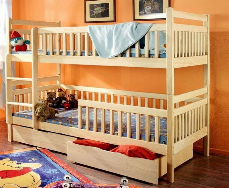 Les modèles à deux étages conviennent à deux enfants âgés de deux ans, c'est une sorte de coin pour un enfant avec un lit. Deux lits permettent un dessus et un dessous. Ces modèles sont souvent utilisés pour le jardin. De plus, deux lits seront une excellente option pour deux ou même trois enfants de sexes différents.