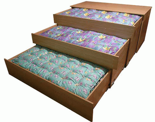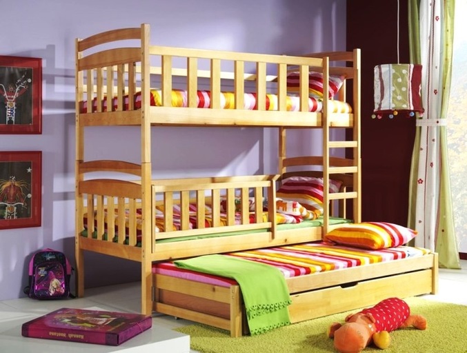 Un ensemble de couchage à trois niveaux convient à trois, deux enfants âgés de deux ans. Ces produits peuvent également être utilisés pour le jardin et l'appartement. Cependant, vous devez regarder la hauteur des structures, les produits hauts à trois niveaux peuvent ne pas correspondre à la taille standard de la hauteur de l'appartement. Il est préférable de mettre des produits à trois niveaux pour les maisons à hauts plafonds, pour un jardin.
