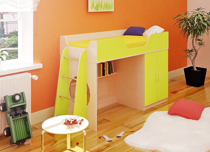 Ce coin enfant avec lit convient aux enfants à partir de 2 ans et aux adolescents. Les lits d'enfants de 2 vous permettent de gagner beaucoup d'espace. La hauteur des produits est assez grande, il est recommandé de les installer dans des appartements hauts. Le mur pour enfants avec un lit a un aspect multifonctionnel. Ces lits d'enfants pour garçons sont très populaires chez les adolescents, surtout s'il y a des meubles moelleux sous la forme d'un canapé en dessous. Quel que soit l'âge de l'enfant, ce design ne le laissera pas indifférent.