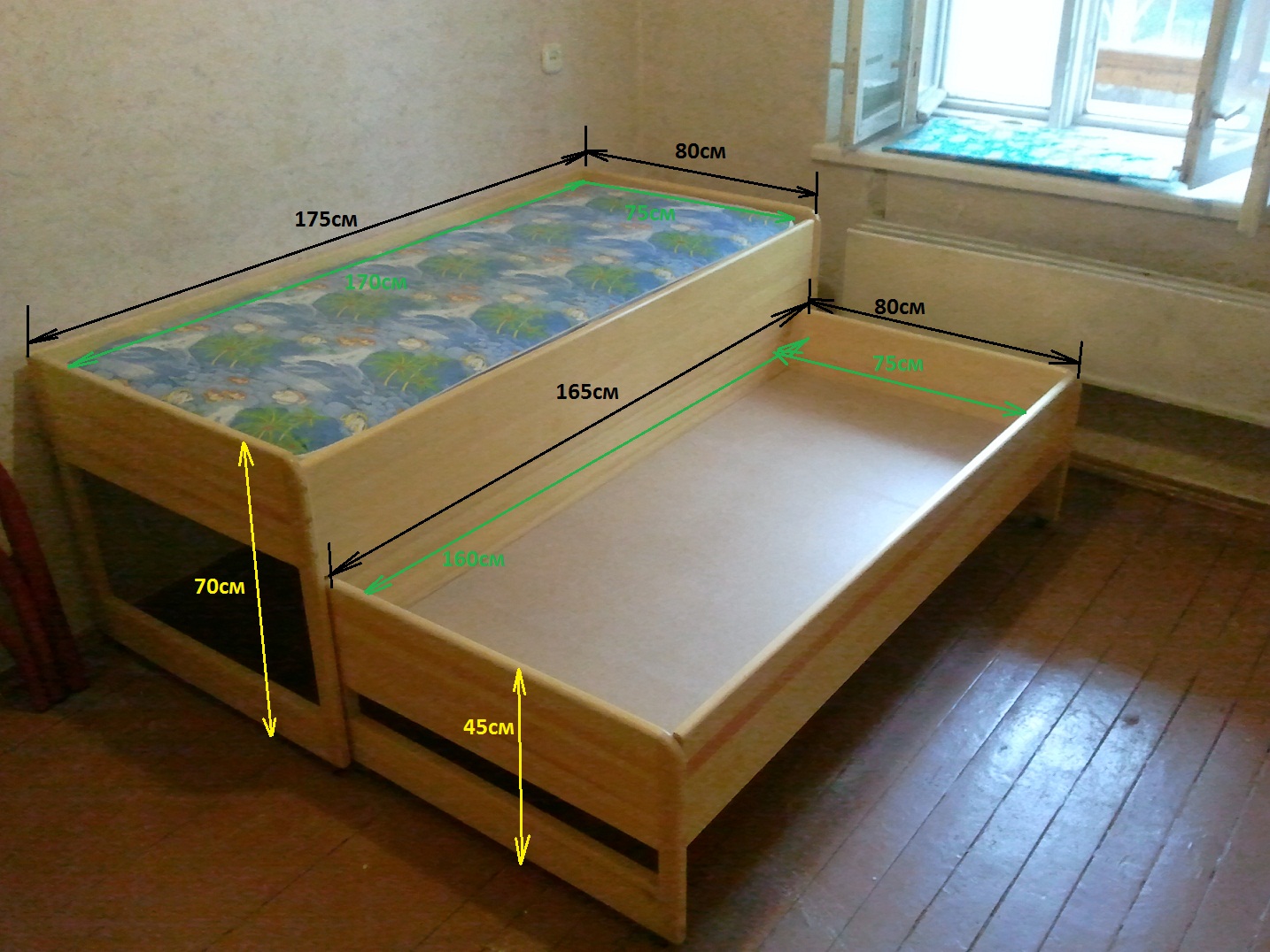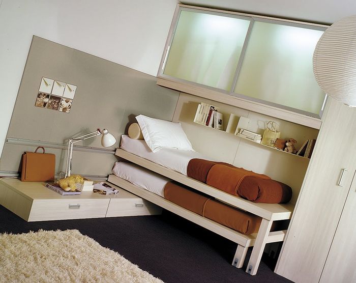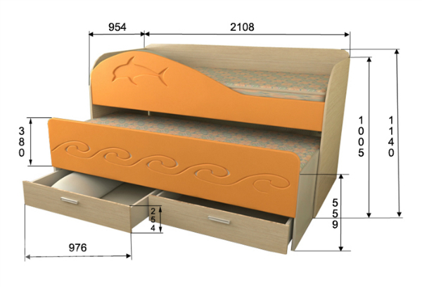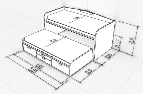 - modèle rétractable avec possibilité de transformation individuelle.La couche inférieure peut être facilement retirée et déplacée. Un lit séparé est formé avec un endroit confortable pour dormir. Le gain de place souhaité est atteint. Il n'y a pas d'inconvénients dus à la mobilité du produit. Une couche pliante peut être installée n'importe où dans la pièce;