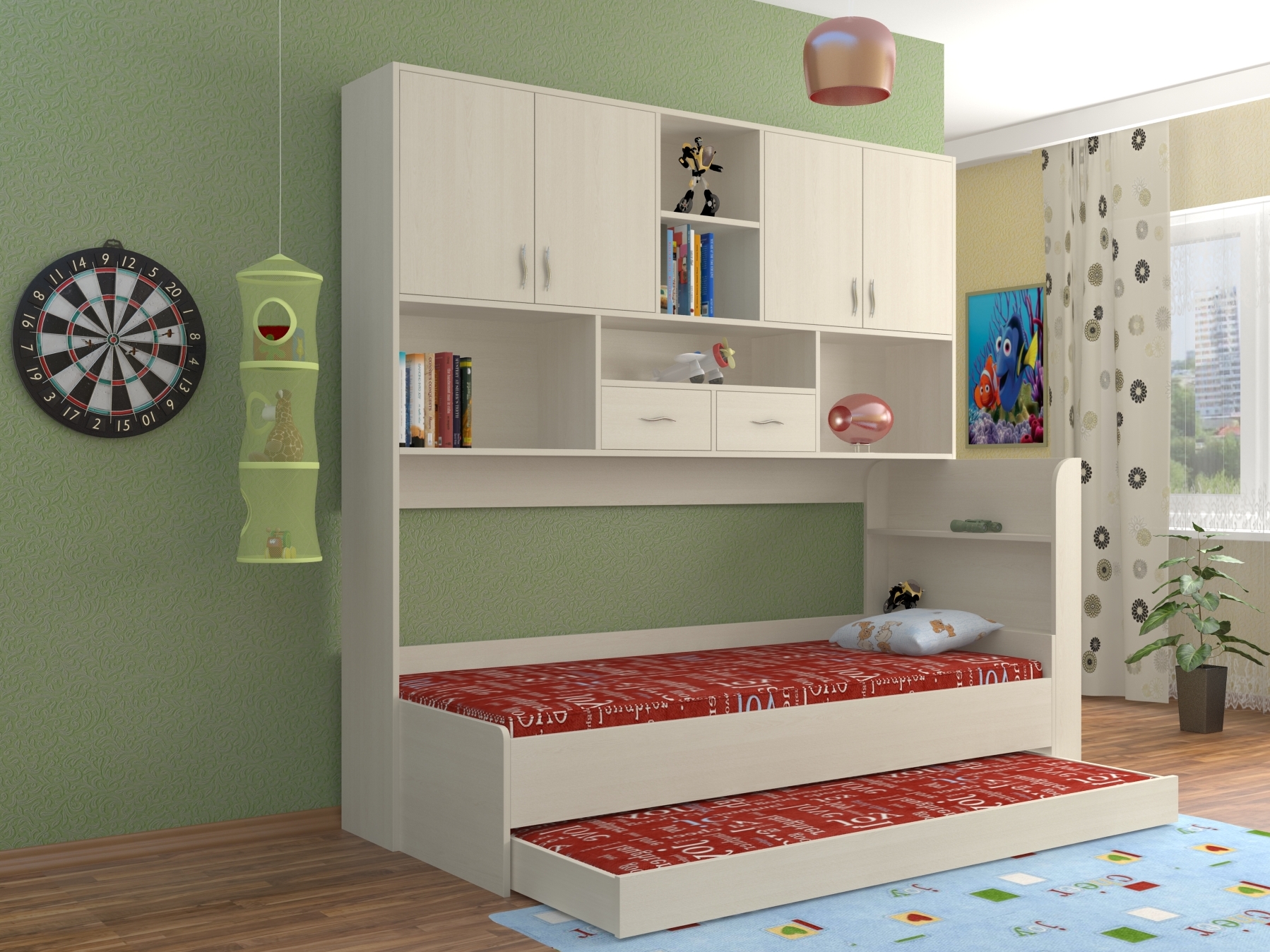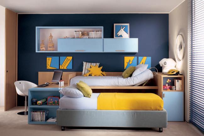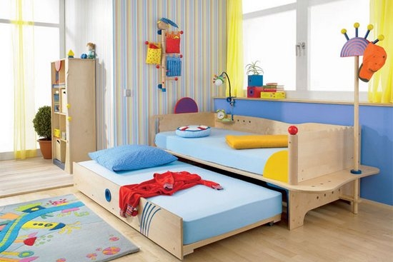 Une petite partie des locaux nécessite une approche non standard de la sélection des meubles. L'espace libre est une nécessité pour les chambres d'enfants en raison de l'activité et de la mobilité des petits habitants. Le modèle du lit escamotable pour enfants appartient aux transformateurs, il vous permet de transformer facilement un produit compact en un lieu de couchage spacieux et à part entière.