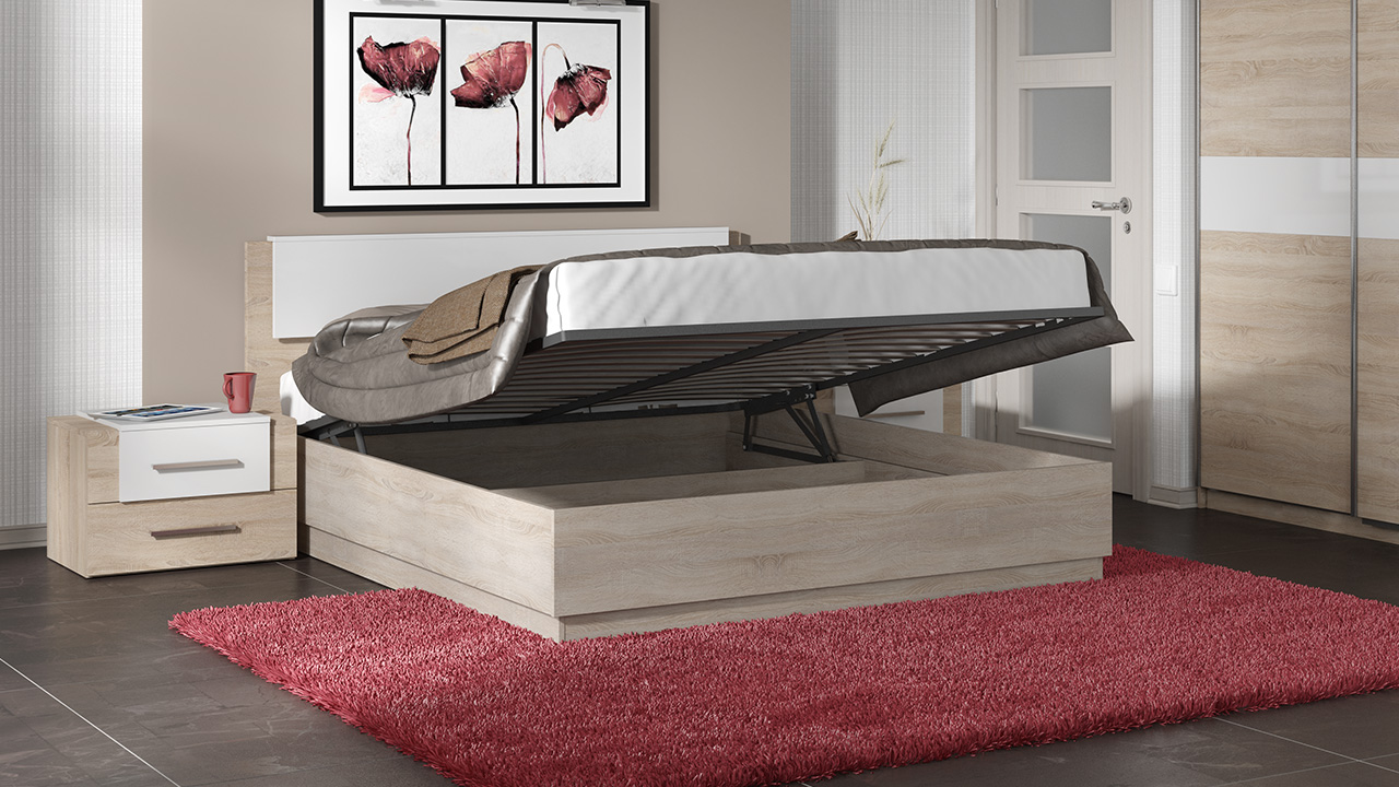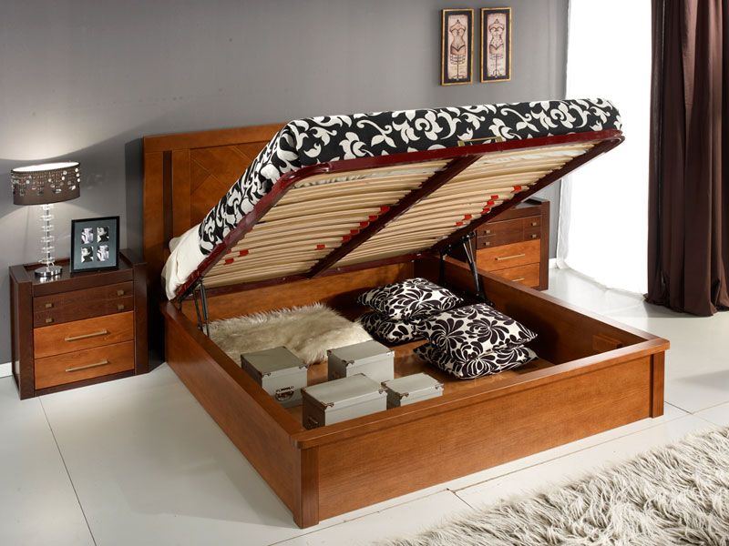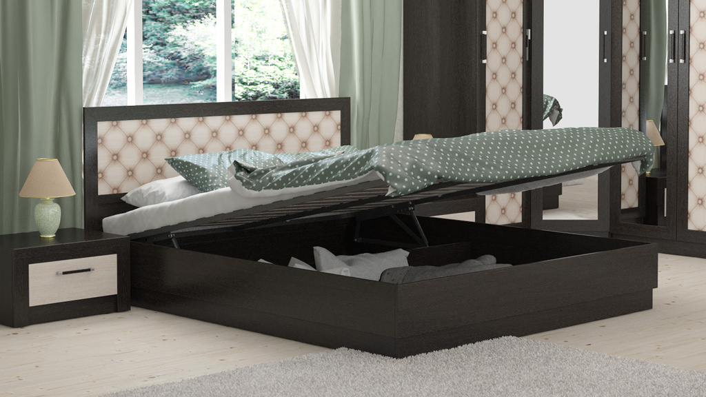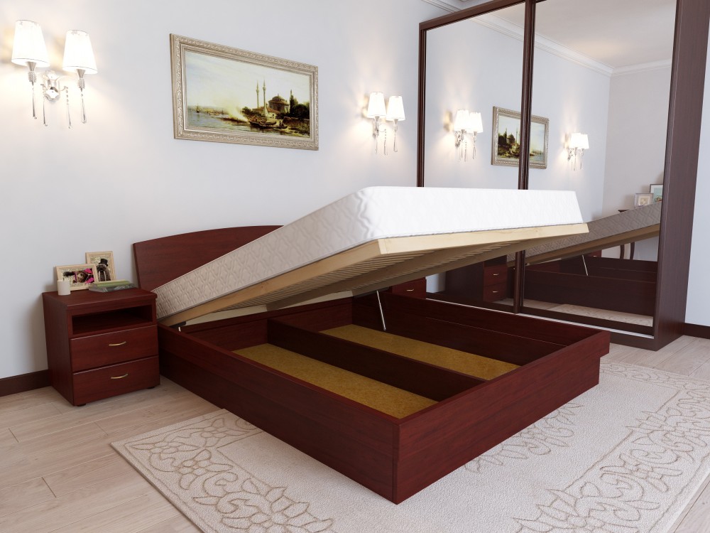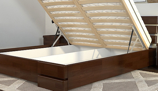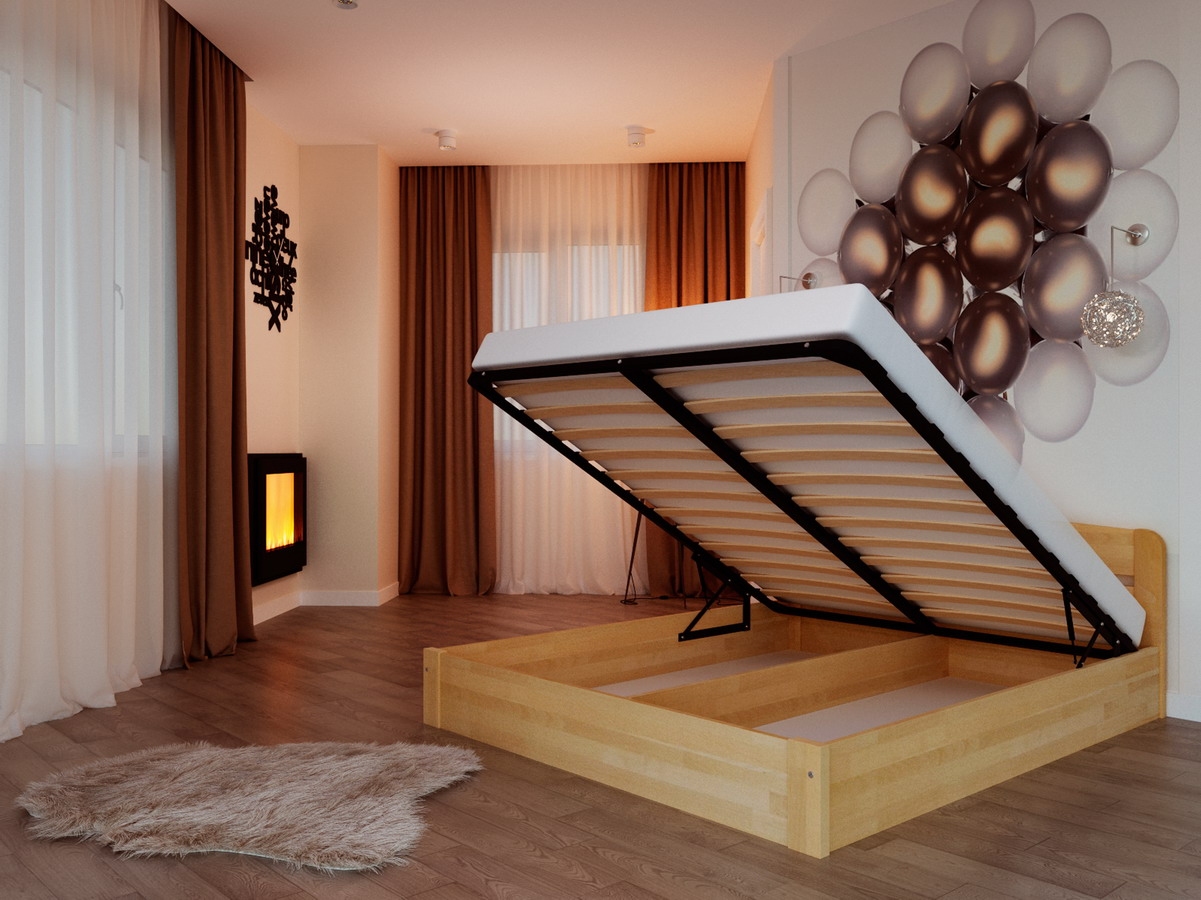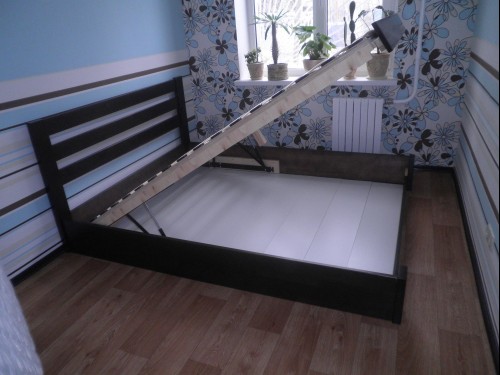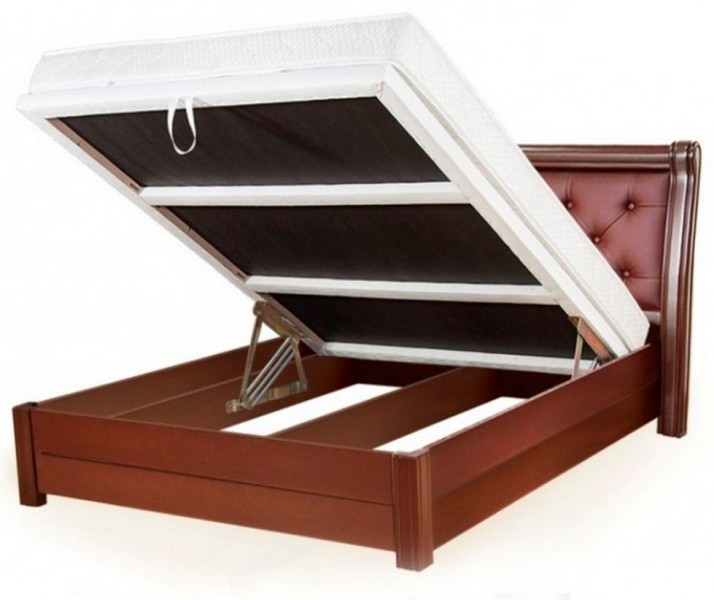 Dans la plupart des cas, ce modèle est en hêtre.En tant que mécanisme pour élever le lit, des amortisseurs à gaz sont utilisés, qui sont considérés comme l'appareil le plus durable, le plus pratique et le plus facile à utiliser, grâce auquel même un enfant peut soulever un matelas aussi massif.