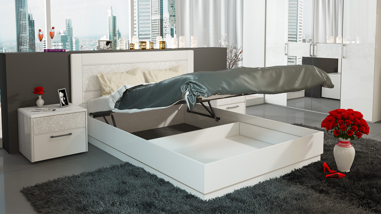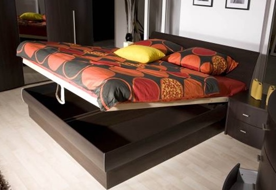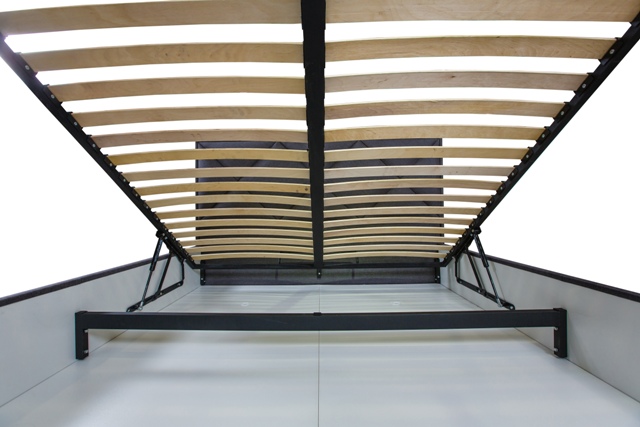 - le prochain avantage est plus approprié par rapport aux lits qui tirent des tiroirs supplémentaires. Lorsque les tiroirs sont sortis, il y a des désagréments lors de leur ouverture, les roulettes collent à la moquette, rayent le parquet et le bruit des roulettes. Avec le mécanisme présenté, le processus d'ouverture est silencieux, facile, et dans le cas des amortisseurs à gaz, la boîte s'ouvre sans trop d'effort ;