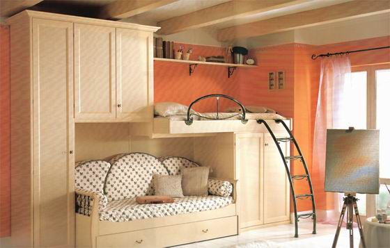 Un lit superposé est la meilleure solution pour les appartements d'une pièce où vivent des familles avec enfants. Dans ce cas, le premier niveau est pour les adultes et le second pour l'enfant. Si l'enfant n'est que dans la famille, mais que sa chambre est petite, il vaut mieux renoncer à l'envie d'installer ici un lit et un bureau à part entière. Il est préférable de choisir un lit superposé avec un bureau, des tiroirs, des étagères.