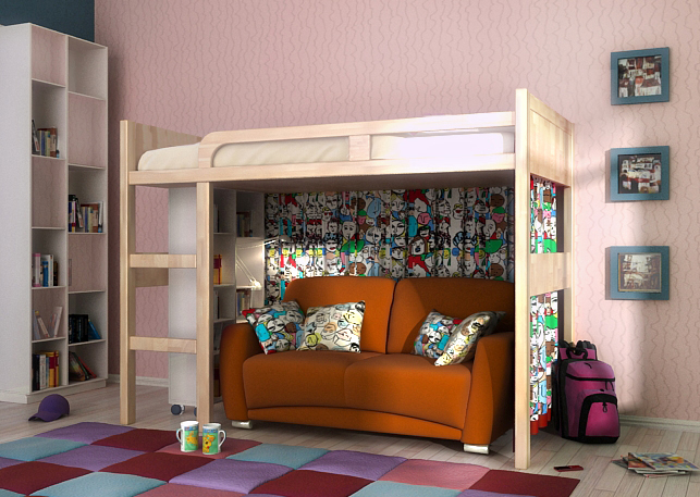 Pour une chambre d'enfant de 12 à 18 ans, un lit superposé est la meilleure solution au problème de zonage. L'adolescent pourra se retirer pour dormir au deuxième étage et apprendre des leçons, lire des livres pour lui au premier étage d'un tel meuble. À cet âge, il est si important d'être seul avec soi-même, avec ses pensées.