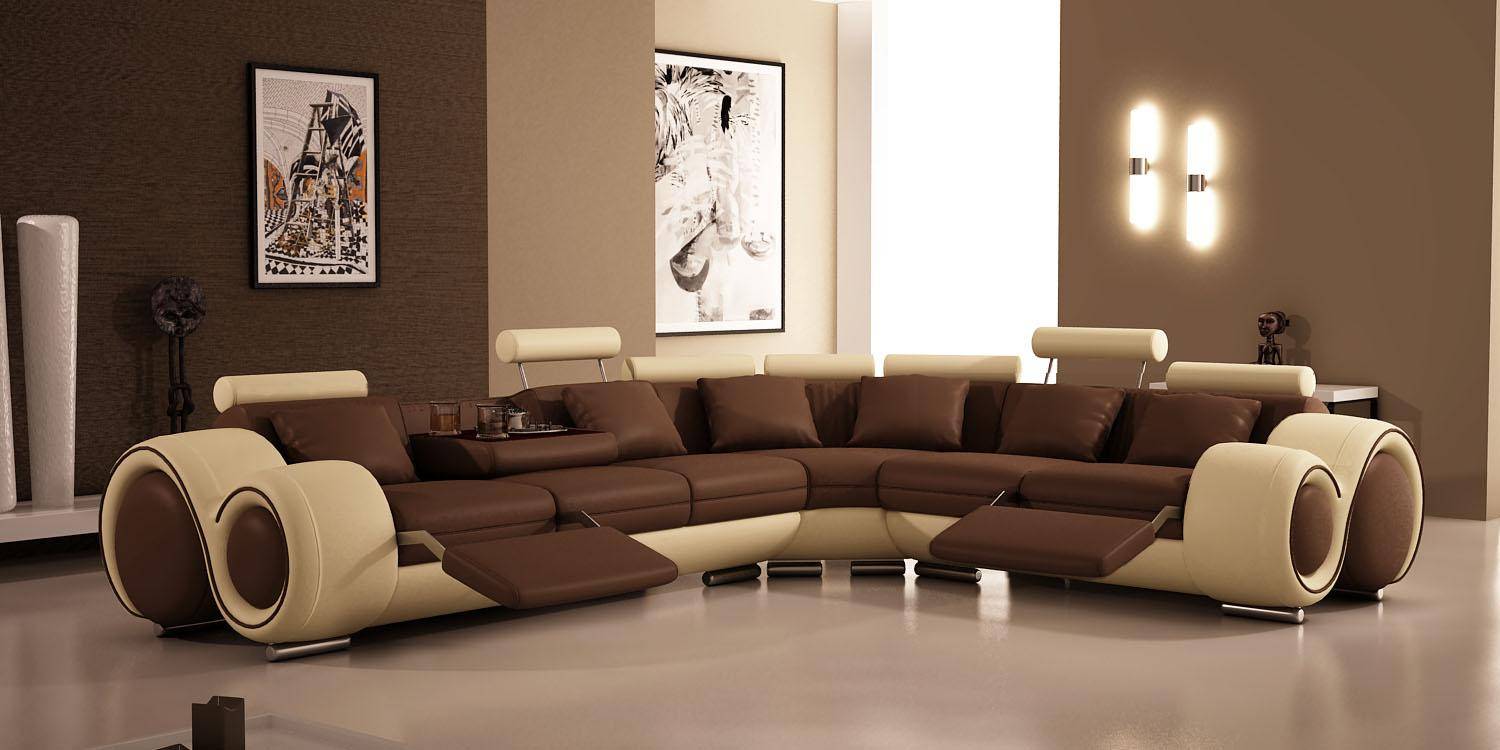 Les photos du canapé d'angle pour la salle sont présentées sous de nombreuses formes et les produits diffèrent les uns des autres non seulement par leur taille, mais également par leurs couleurs. Lors du choix de la couleur optimale, la palette de couleurs de la pièce où sera situé le canapé est prise en compte.