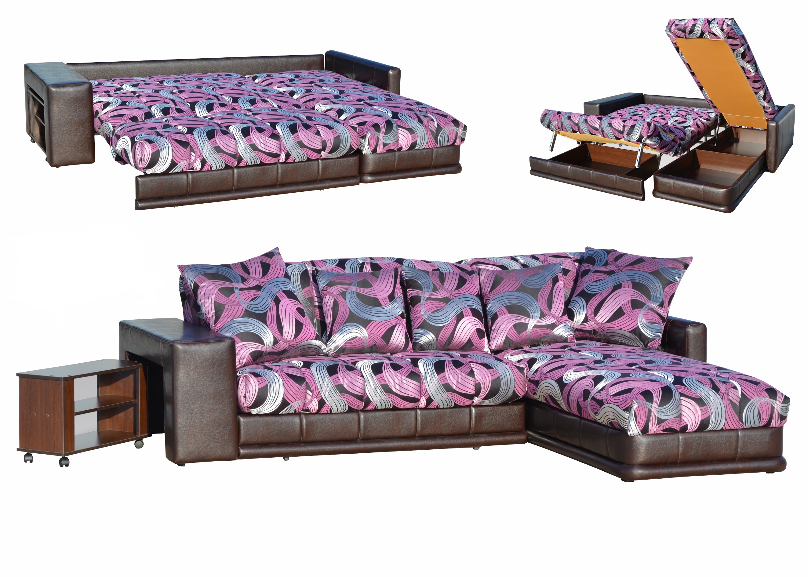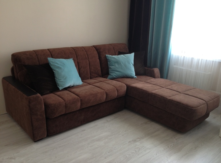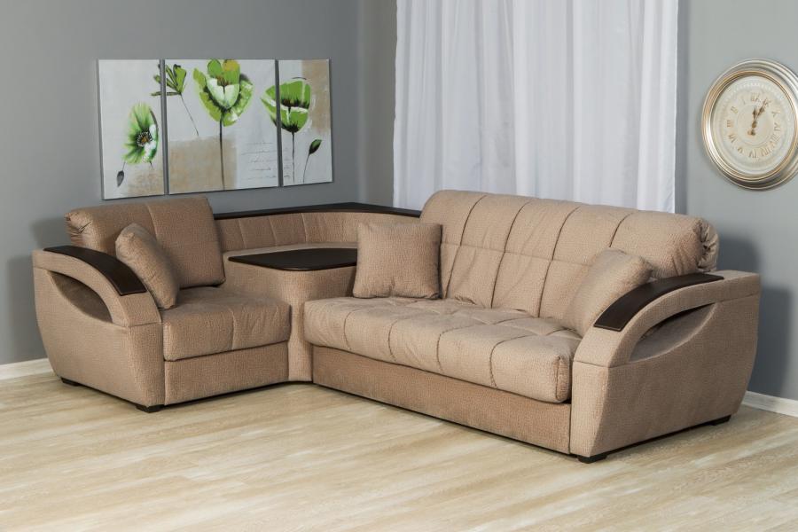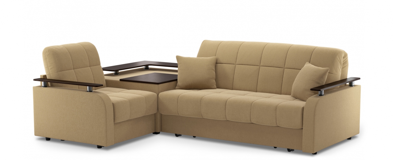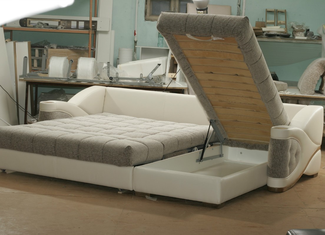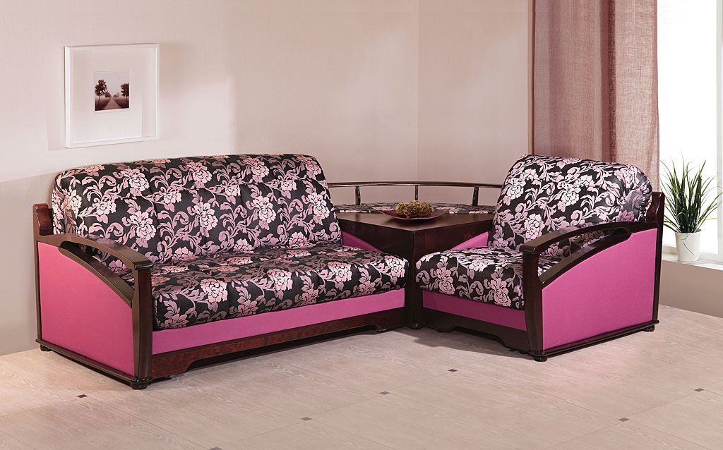Les structures d'angle avec un mécanisme d'arrangement en accordéon avec accoudoirs sont assez confortables et pratiques. La présence d'accoudoirs peut être utilisée comme support pour s'asseoir ou vous pouvez vous appuyer dessus tout en vous relaxant.
