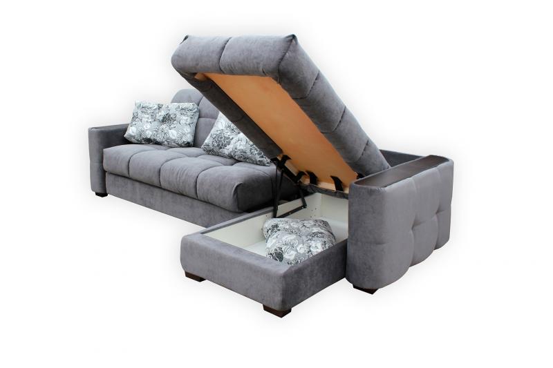le canapé d'angle est équipé d'un tiroir supplémentaire dans lequel vous pouvez ranger diverses choses - oreillers, couvertures, linge de lit ;