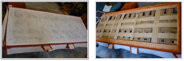 initialement, à l'aide de colle, la première couche de mousse est fixée et il est nécessaire de couper les feuilles en cours de travail conformément aux dimensions du cadre;