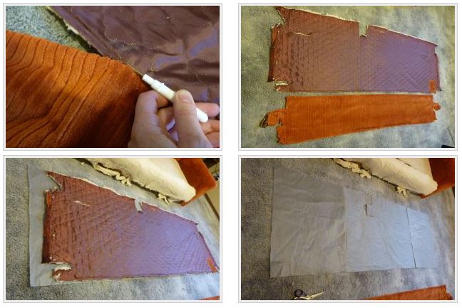 Les parties retirées sur les côtés doivent être laissées comme modèle.Le siège doit être enveloppé de cotonComment fixer la housse de siègeFixation du couvercle sous le fondDémontage des parois latéralesFabrication de parois latéralesPose en basFixation des côtés finisPartie arrièreCouverture arrière de canapé