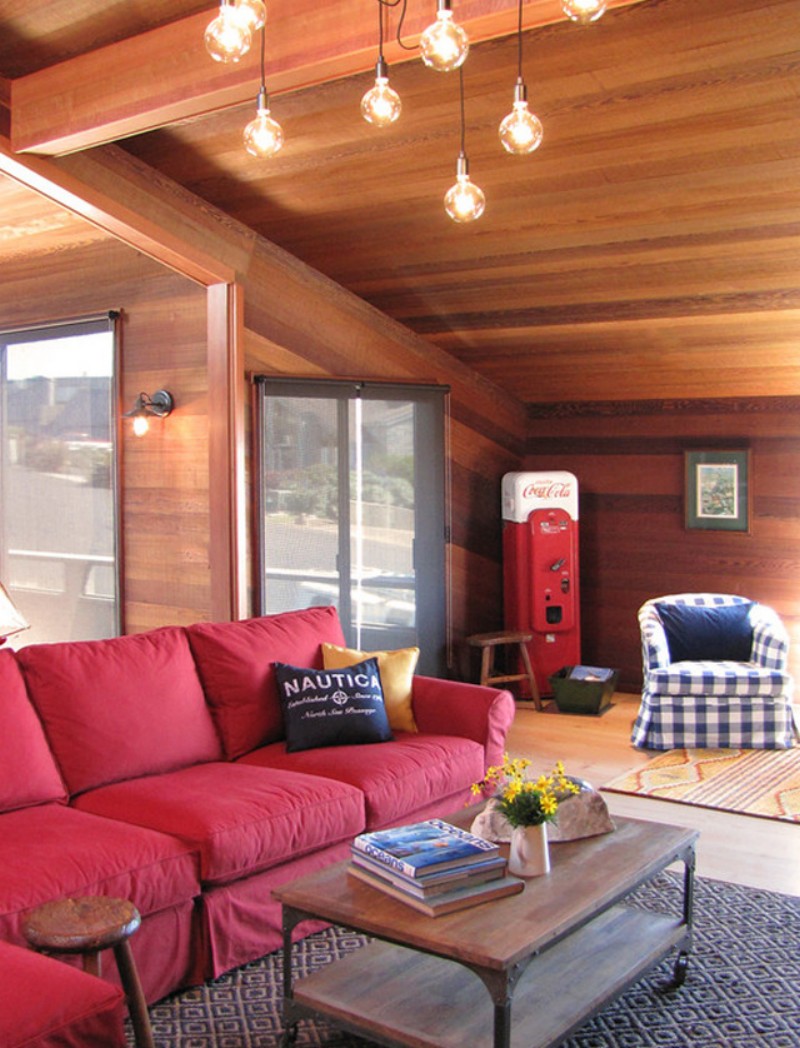 Le choix d'une teinte partenaire peut dépendre de l'utilisation d'un canapé rouge à l'intérieur: