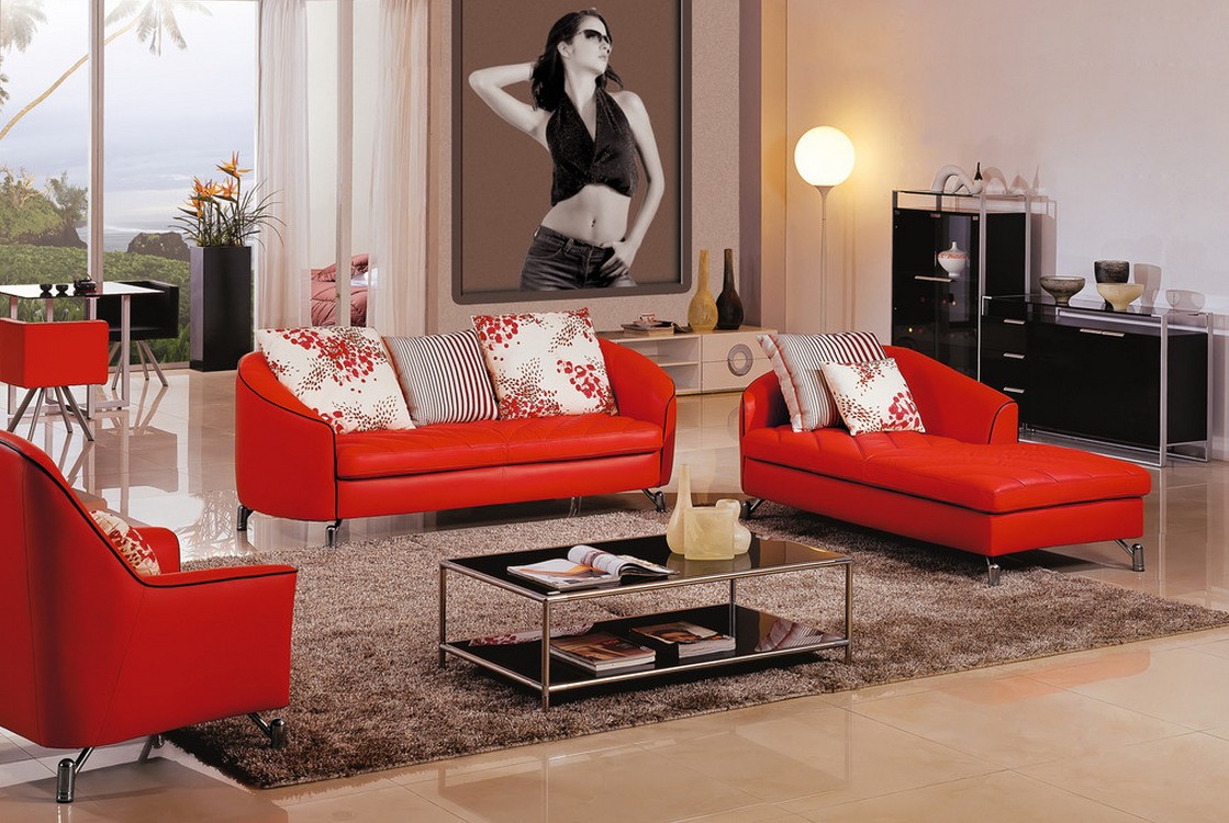 - pour une direction high-tech ou loft stylée, la meilleure combinaison de couleurs sera le gris dans ses différentes nuances. Il mettra favorablement en valeur le canapé rouge, surtout s'il est en cuir rouge. Dans d'autres domaines stylistiques, le gris sera également un très bon partenaire pour les meubles rouges, surtout s'il est soutenu par des peintures lumineuses, un bouquet de fleurs ou un lampadaire rouge élégant ;