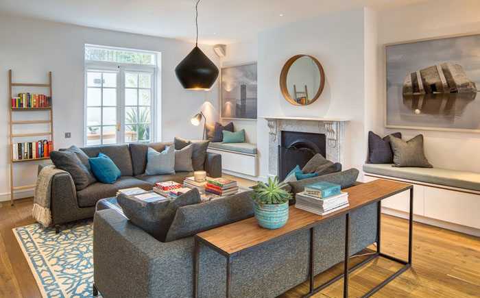 La poussière est moins visible sur les canapés gris que sur les surfaces de meubles blanches ou noires. Cette couleur créera une atmosphère de paix et de tranquillité pour le salon.