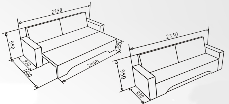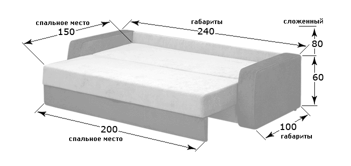 les fabricants proposent différentes tailles de structures, donc si une personne dort dessus, on achète des meubles rembourrés avec un lit confortable de 140x190 cm, et s'il y a deux personnes, il vaut mieux acheter un canapé avec un mécanisme Eurobook avec un couchage 180x200 cm;