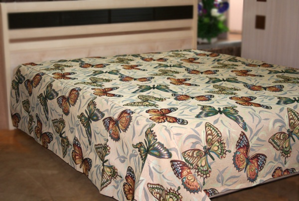Il n'y a qu'un seul inconvénient, les nuances de tissus saturées lumineuses nécessitent de grandes pièces spacieuses; dans une petite chambre, une couverture en tapisserie sera inappropriée. La galerie de photos montre les options les plus brillantes.