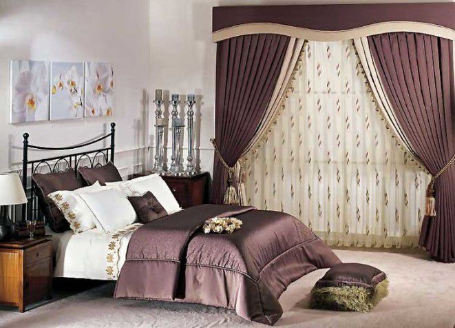 Lors de la création d'un intérieur classique pour la décoration des fenêtres, un lieu de couchage, les décorateurs conseillent d'utiliser un seul matériau. Pour cela, en règle générale, des tapisseries denses ou des tissus en daim sont choisis. Les textiles peuvent être unis ou décorés d'un imprimé élégant - le choix dépend de la combinaison de solutions de couleurs adoptées à l'intérieur. La taille de la zone de couchage affecte également. À cet égard, plusieurs des variantes les plus courantes peuvent être distinguées.