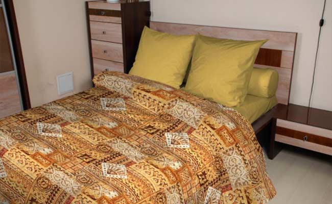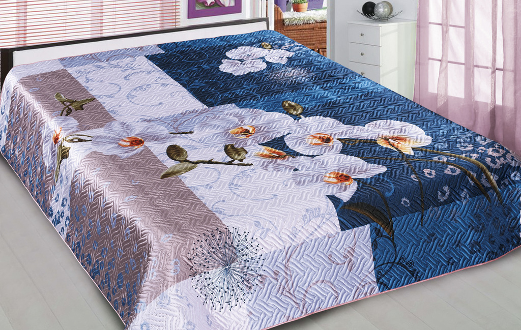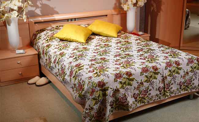 Le matériau artificiel moderne est idéal pour fabriquer un couvre-lit durable et fiable dans une chambre à coucher.