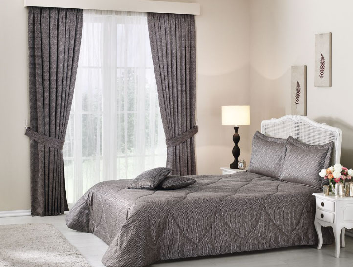 housses de coussin, rideaux, couvre-lit, tulle et lambrequin;
