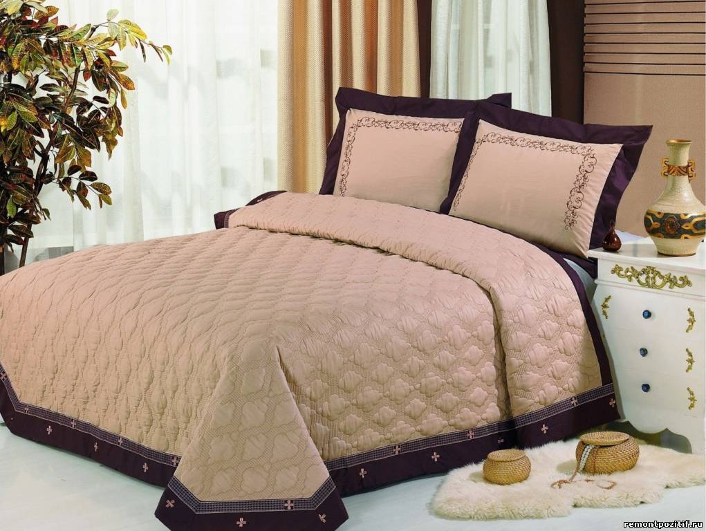 Le couvre-lit remplit les fonctions décoratives les plus importantes dans la création de tout intérieur moderne ou classique. Mais simultanément avec la fonction décorative du couvre-lit, la photo est présentée ci-dessous, elle remplit des fonctions de protection, protège le linge de lit de la poussière, de la saleté et peut servir de couverture. Le choix de la couverture est un processus assez laborieux. Tout d'abord, vous devez étudier attentivement le produit, déterminer la qualité de la couture, vous familiariser avec les principales recommandations du fabricant en matière d'entretien et de fonctionnement. Un prix bas et une qualité douteuse signifient que bientôt l'élément de design le plus impressionnant devra être remplacé par un produit plus durable.