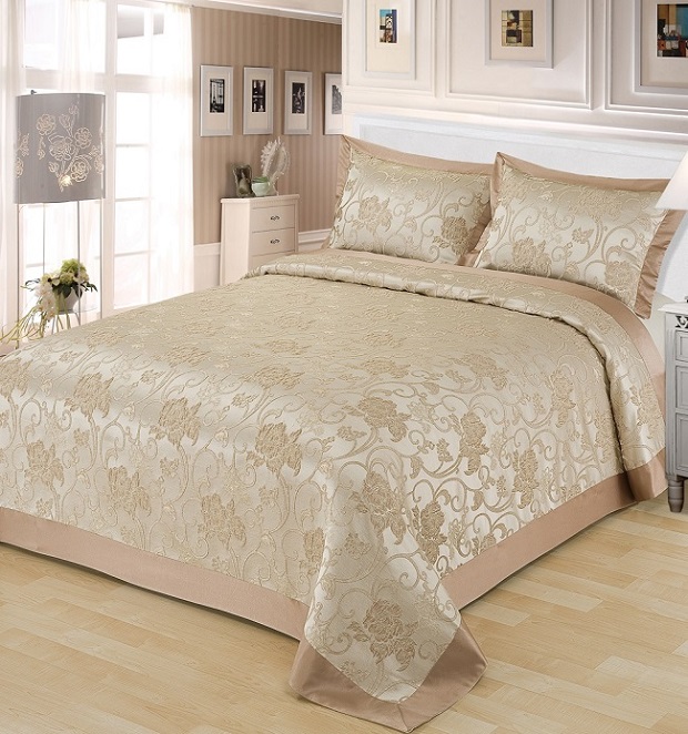 avec un soin minutieux, un couvre-lit jacquard sur un lit peut durer plus d'une douzaine d'années. Regardez la photo pour plusieurs options pour la conception de la chambre.