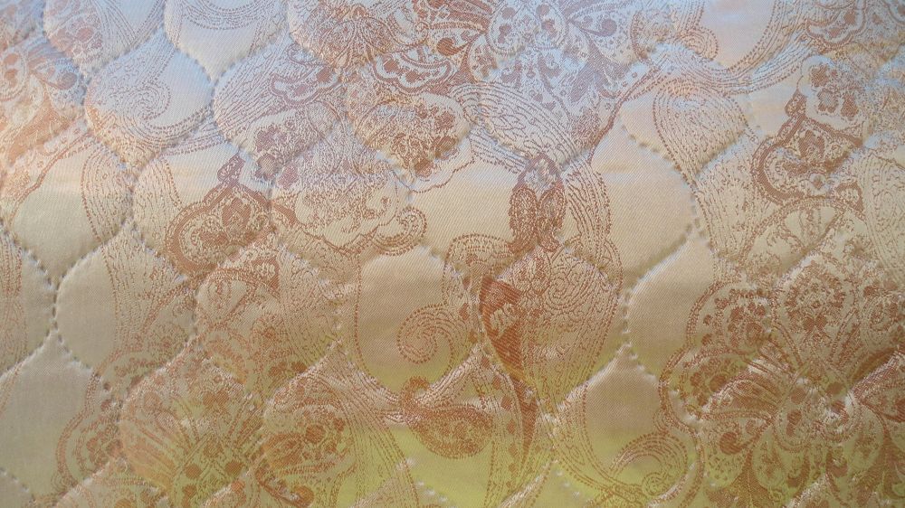 Parmi les inconvénients, le produit en coton nécessite des soins particuliers, principalement un nettoyage professionnel ou un lavage des mains à l'eau tiède. Les motifs de satin sont montrés sur la photo.