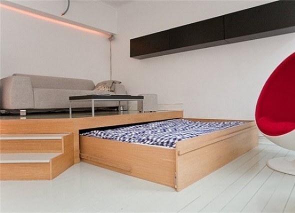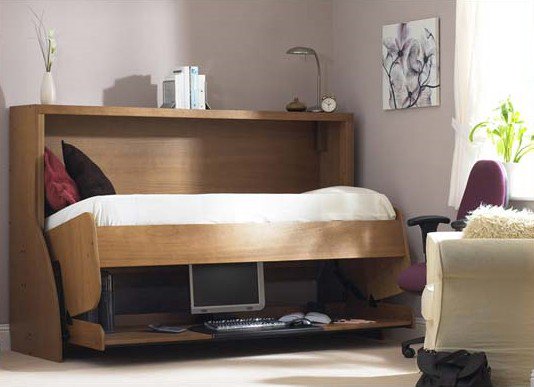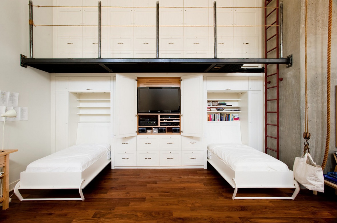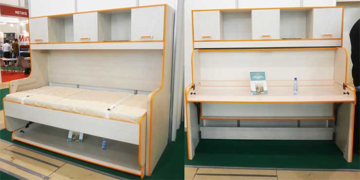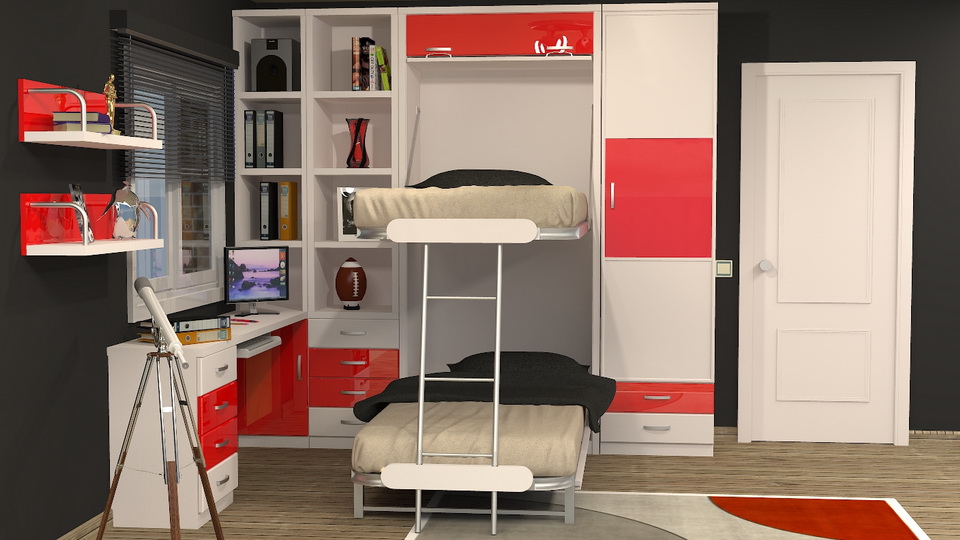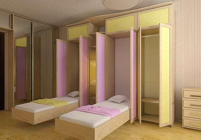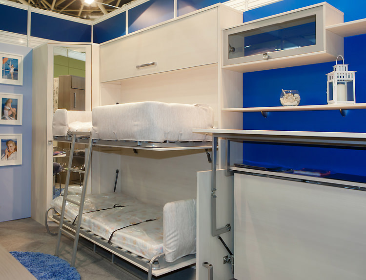 - ce modèle s'installe facilement dans les chambres d'enfants. Il existe des modèles conçus pour les petits espaces. Ces éléments conviendront aux enfants, car il est important que la chambre des enfants économise plus d'espace libre pour jouer;