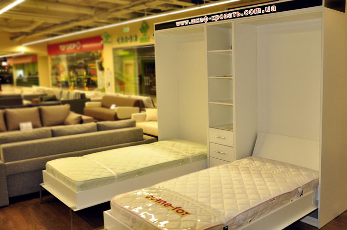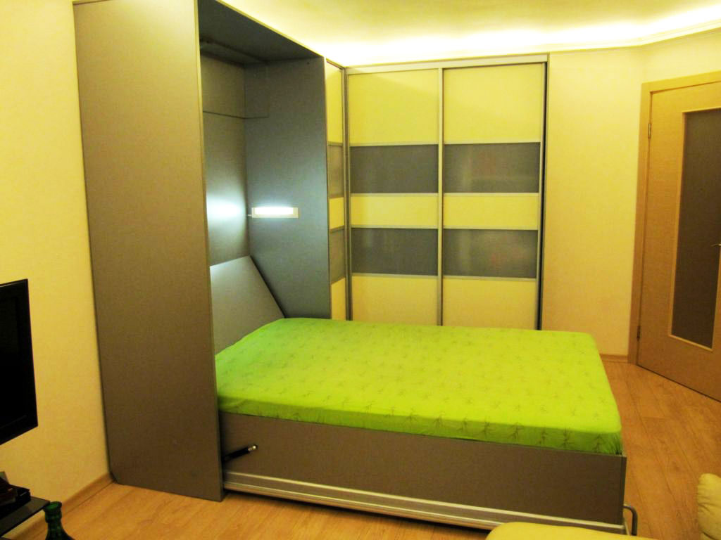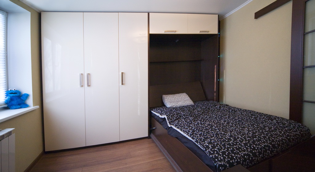 - fonctionnalité - grâce à la présence d'un mécanisme spécial, le lit peut être agrandi la nuit et assemblé sous la forme d'une armoire pendant la journée;