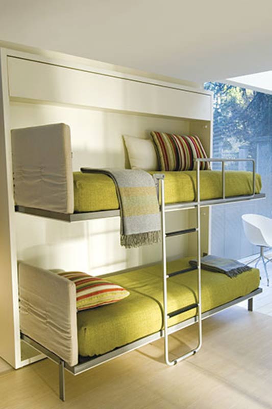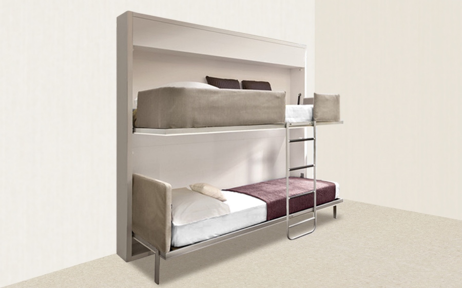 L'option table à table convient aux chambres individuelles. Il peut être installé dans les chambres d'enfants, les chambres, les chambres d'amis.En apparence, c'est une conception horizontale.
