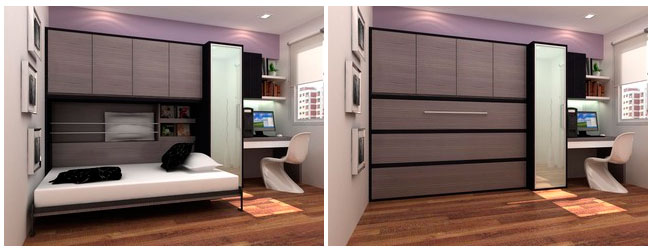 Ce type de produit contient trois éléments à la fois - un lit pliant, un canapé et une armoire. Cette conception complétera les chambres et les espaces de vie.Pour les enfants, ce modèle sera particulièrement pratique, car il économisera une grande partie de la pièce et il sera possible de rassembler tous les jouets, objets, accessoires dans le placard.