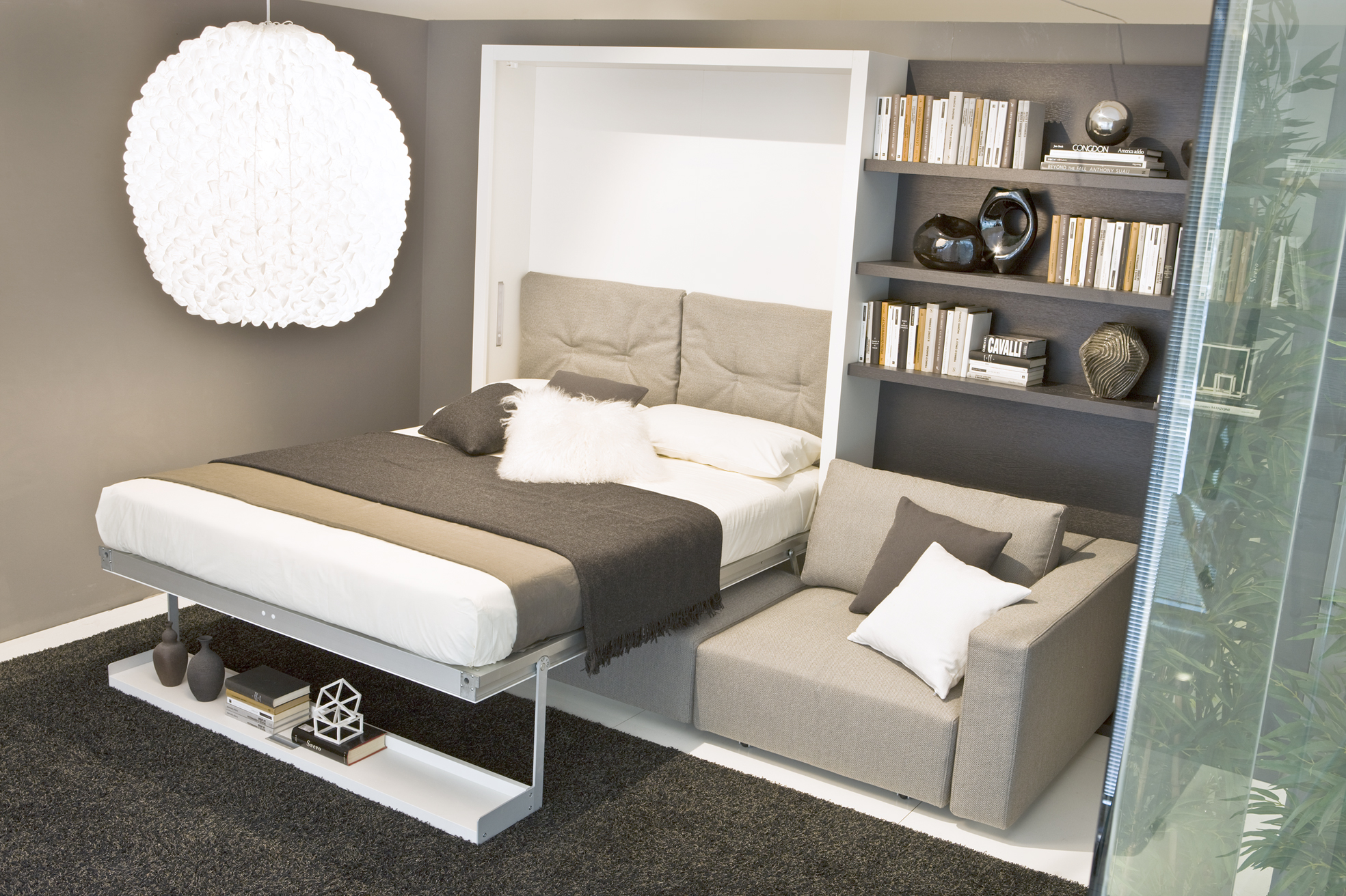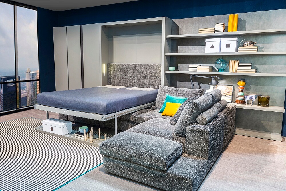 Les lits pliants sont une option appropriée pour les petits appartements, où chaque centimètre compte. Ils offrent des économies d'espace importantes et complètent le style général de l'intérieur.